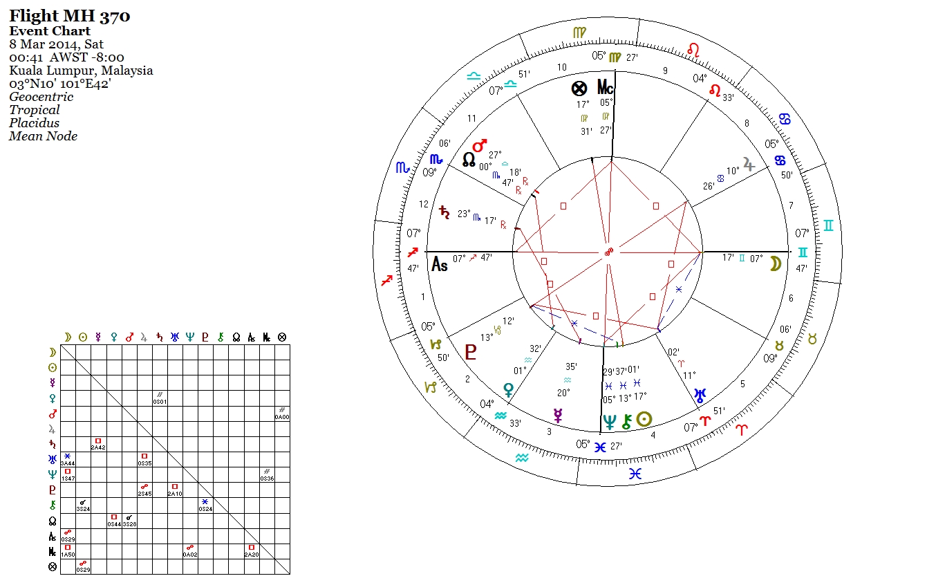 Having said that, I have been quite reluctant to pass any astrological judgment on the situation, not only because it is very complicated and ongoing, but also because of the emotional toll that all this must be taking on the surviving relatives of those who were on board. To them I send my sincerest sympathies and well-wishes. I hope they get some concrete answers soon.