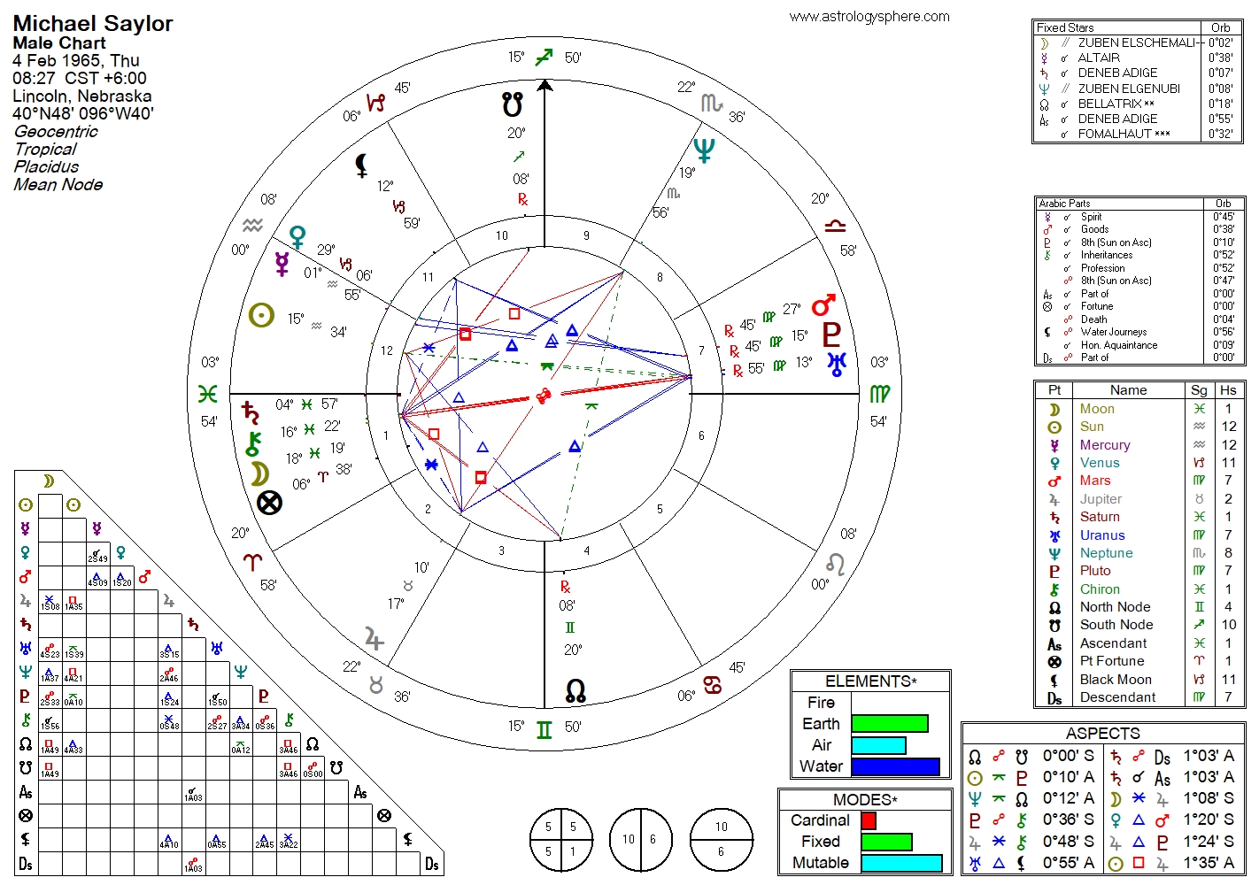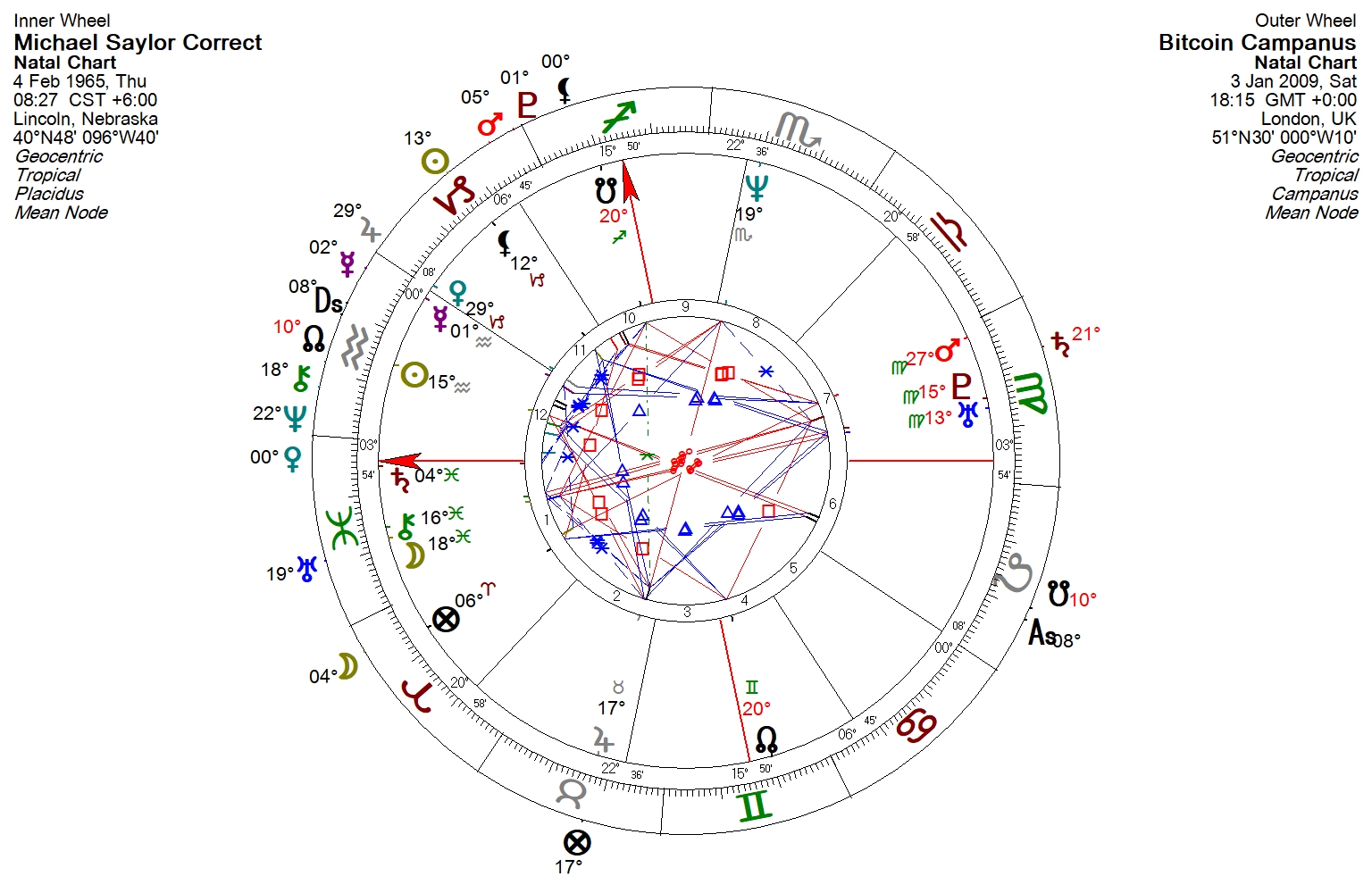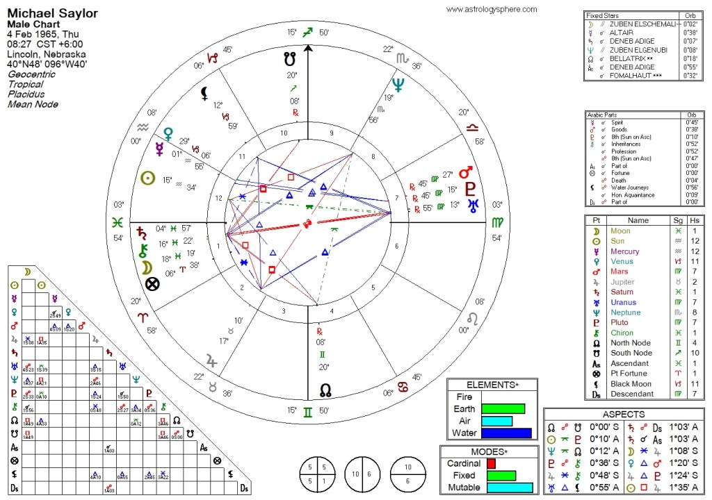 Somebody recently asked me to do some astrology profiles on prominent players in the crypto community. Seeing as it is Aquarius season, I thought I’d start with Michael Saylor, who celebrates his solar return on 4 February. A big thank you to one of my You Tube subscribers for providing his birth data.