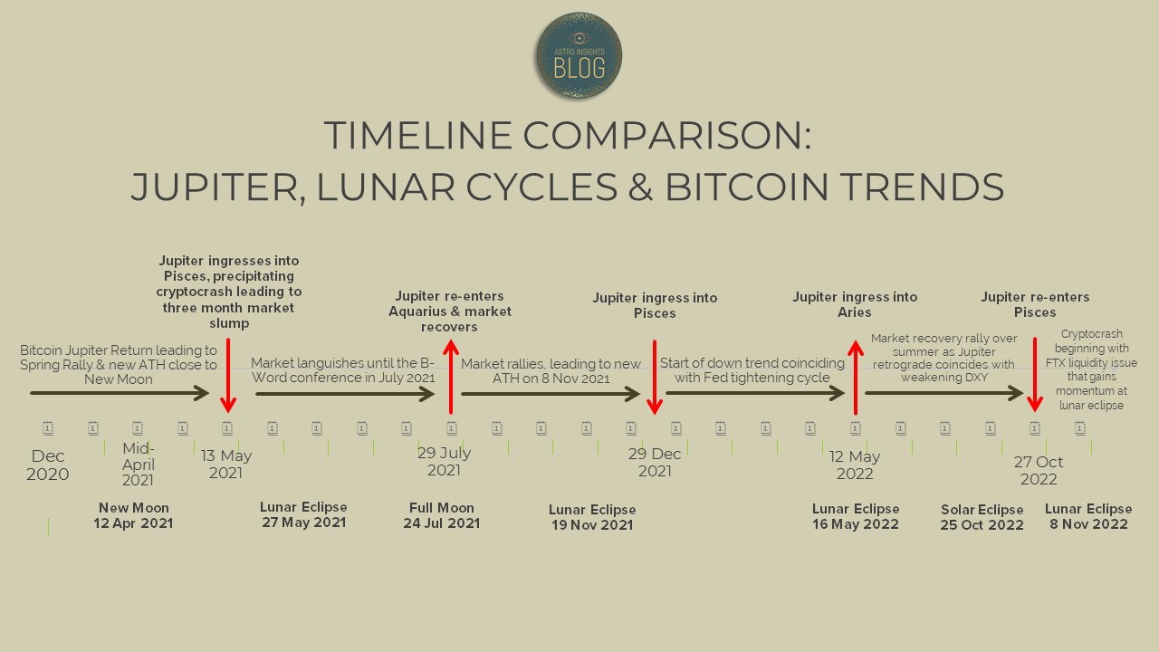 Notice how Jupiter’s entry into Pisces always seems to be a bad omen for the cryptomarket, and also how eclipses seem to accelerate these negative trends if there is confluence in terms of dates.