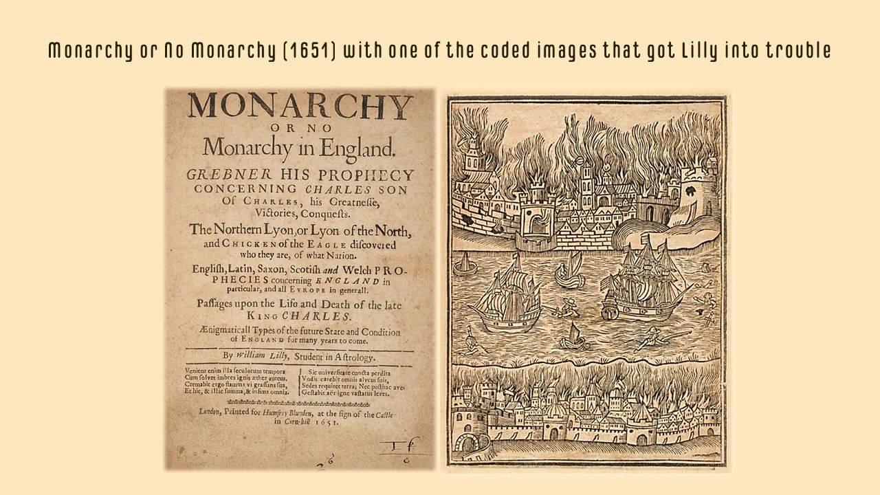 However, there was no escaping the fact that Lilly had predicted the downfall of the Stuart monarchy and been closely associated with parliamentarian figures during the Civil War and Cromwell years. To Lilly, though, it was not a case of political loyalties, but more a case of being true to his art, writing in 1644 that: